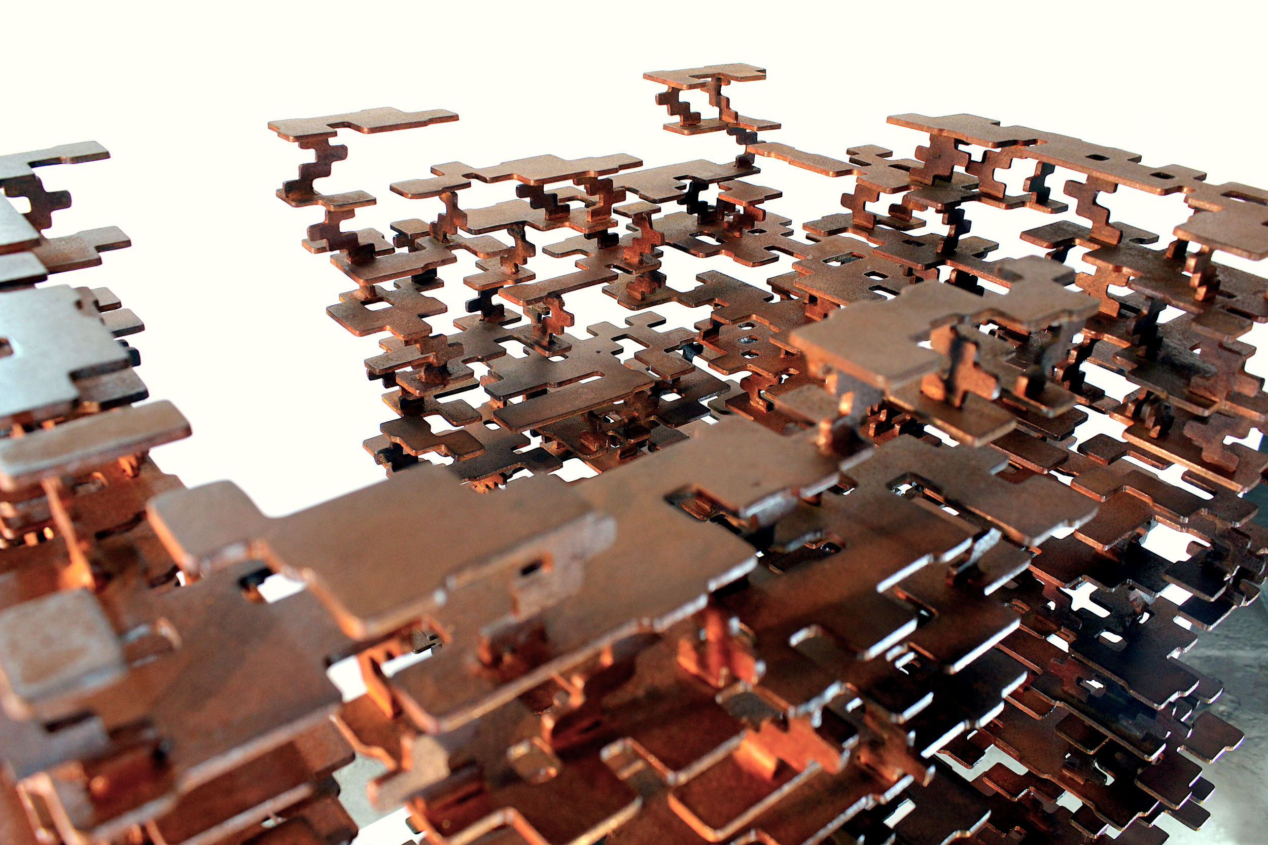 The tower consists of 24 floors that cover the entire area at the bottom and taper upwards into two towers. Each level consists of an organic-looking shape created by an algorithm. Each new level is created by combining the one below with a random matrix. But the logic of connection also works from top to bottom, and isolated elements from lower levels can attach themselves to upper levels, forming free-hanging structures. This creates a complex body and organism that communicates across the different levels. The higher the structure grows, the more fragile and permeable the individual levels become, and the formerly solid structure of the base dissolves more and more as it rises.