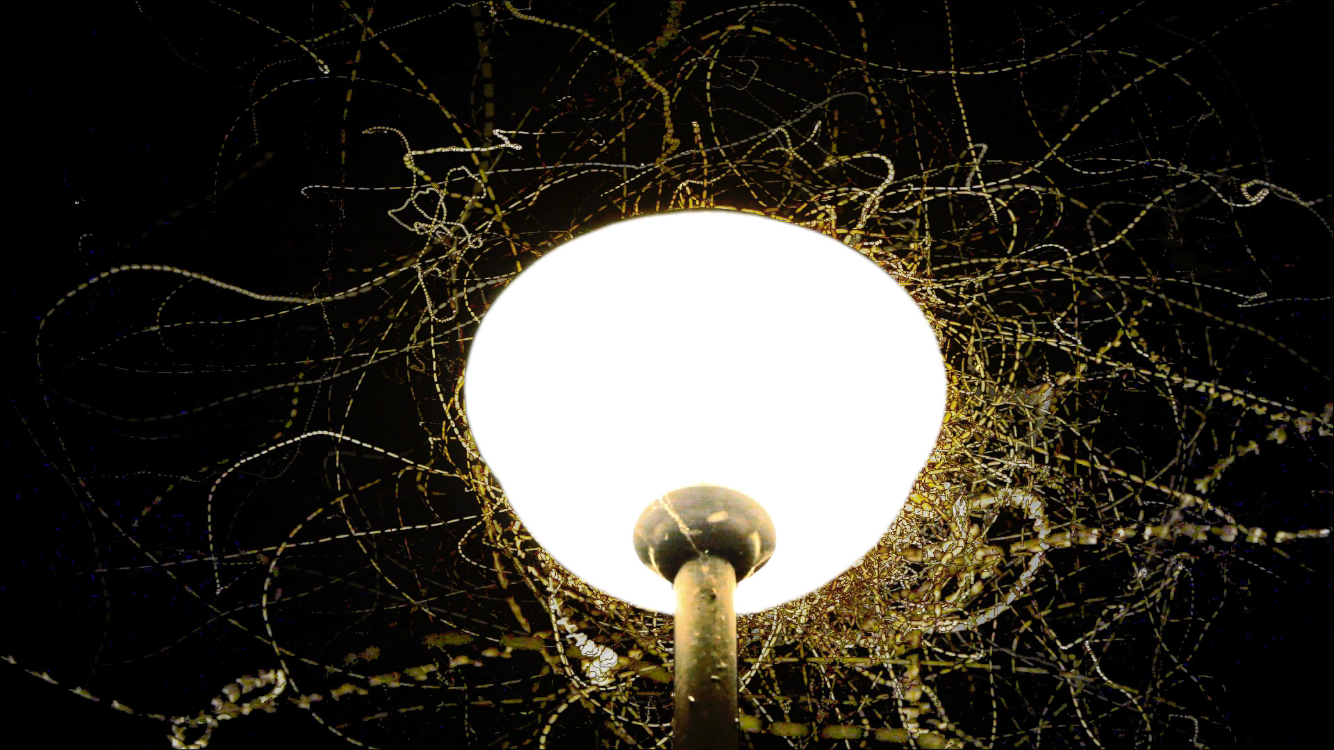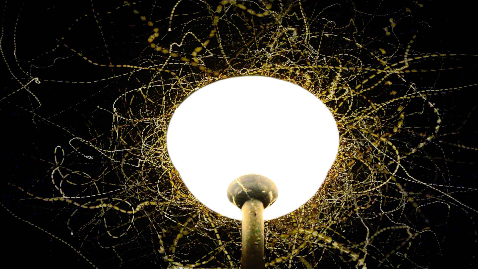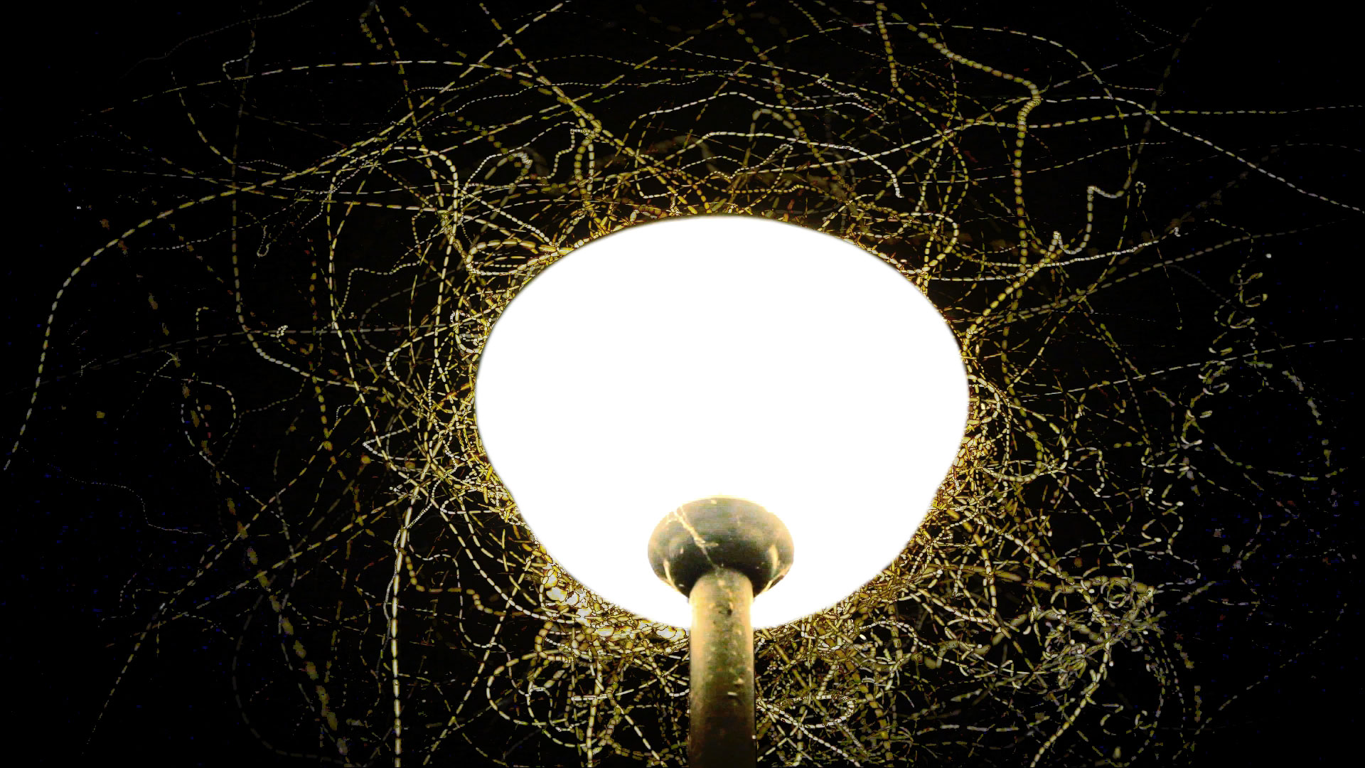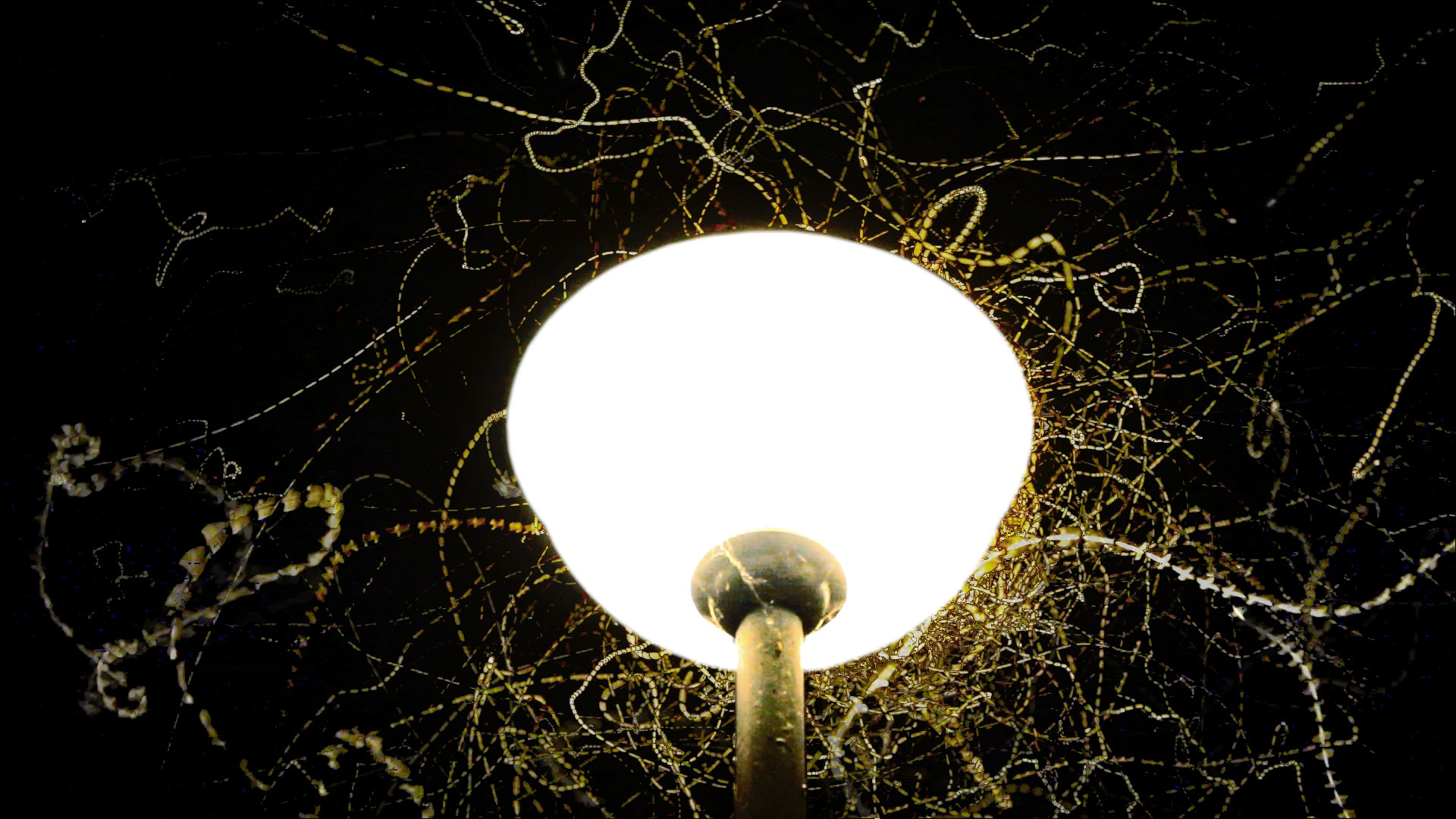 Around a lamp flying insects are a common phenomenon on summer nights. The scenery probably provokes an uneasy feeling for the spectator. On the one hand it is some kind of fascinating experience to see the insects flying over and over again around the light source, on the other, it is a deadly trap and a sad and disgusting spectacle observing them going insane.