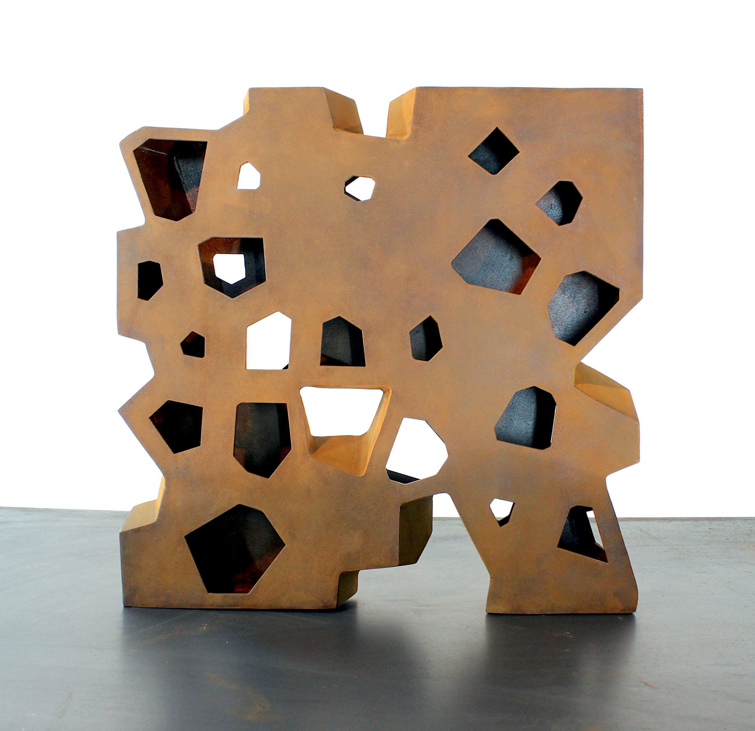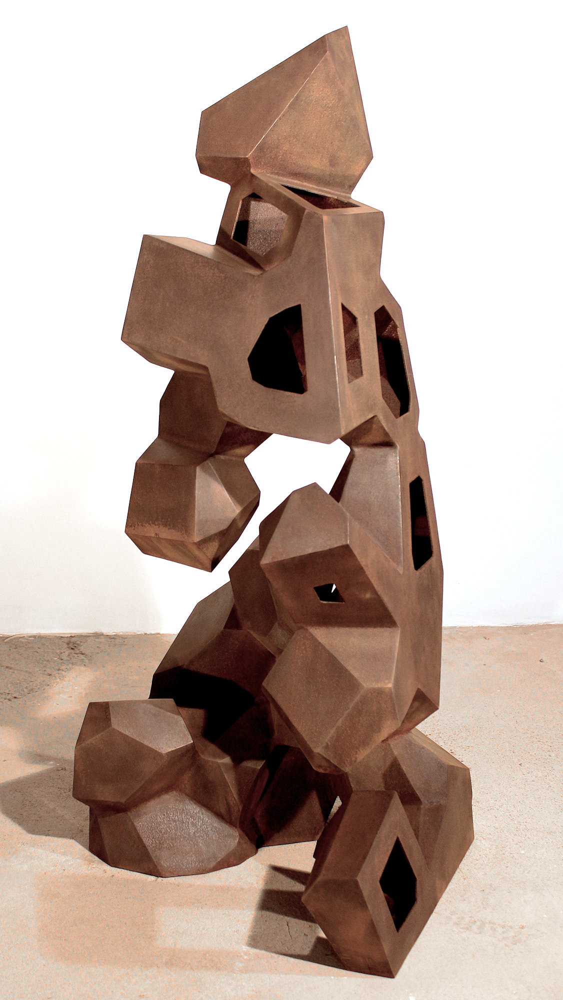 The Bunker Series are corten steel sculptures at the intersection of art and architecture. The complex organisation of cells links in a way to a natural or archaic culture, but their broken surface structure could even be associated with modern stealth technology. However, it is evident to discern a kind of abandoned bunker or shelter. The corroded walls and the dark empty interior spaces are generating an uncomfortable feeling for the observer: the fortress seems to keep an unknown history of conflict, confrontation or desperate struggle to defend the finally disappeared colony against an enemy.